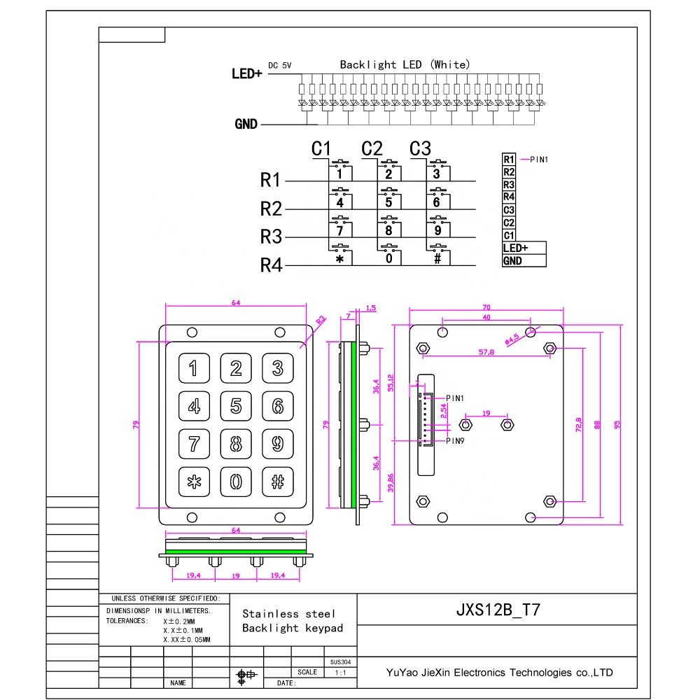 Customized 4X3 Matrix IP65 LED Backlight Control Outdoor Sunlight Responsive Metal Keyboard