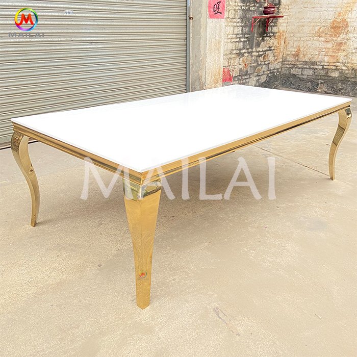 Hot selling hotel wedding banquet stainless steel glass banquet event gold dining table