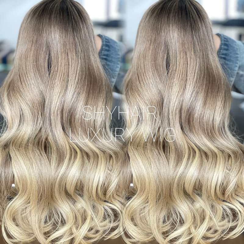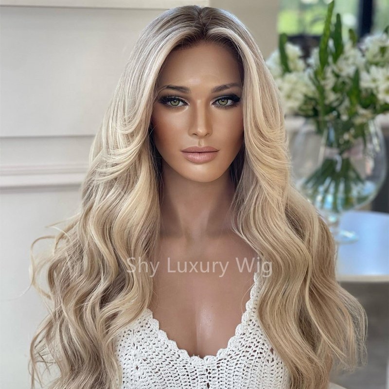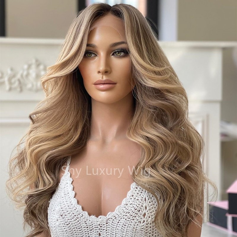 Transparent high-definition lace wig for baby hair with no glue, blonde wavy French lace, 150% density, 22 inches