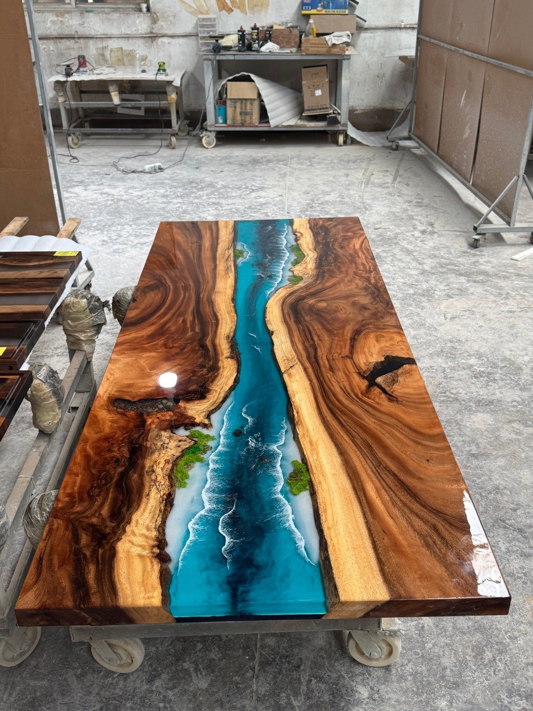 Hot selling resin epoxy desktop wood river office desk epoxy resin solid wood Qinghe dining table