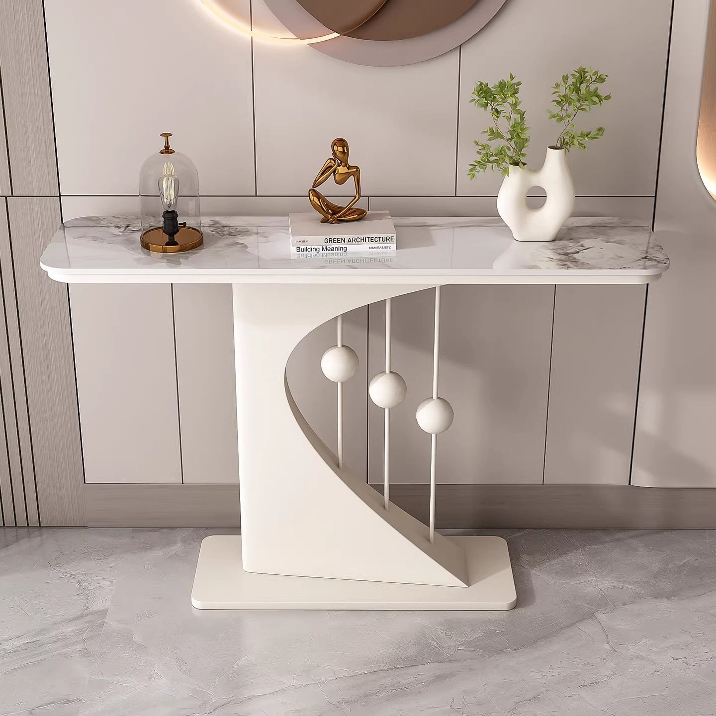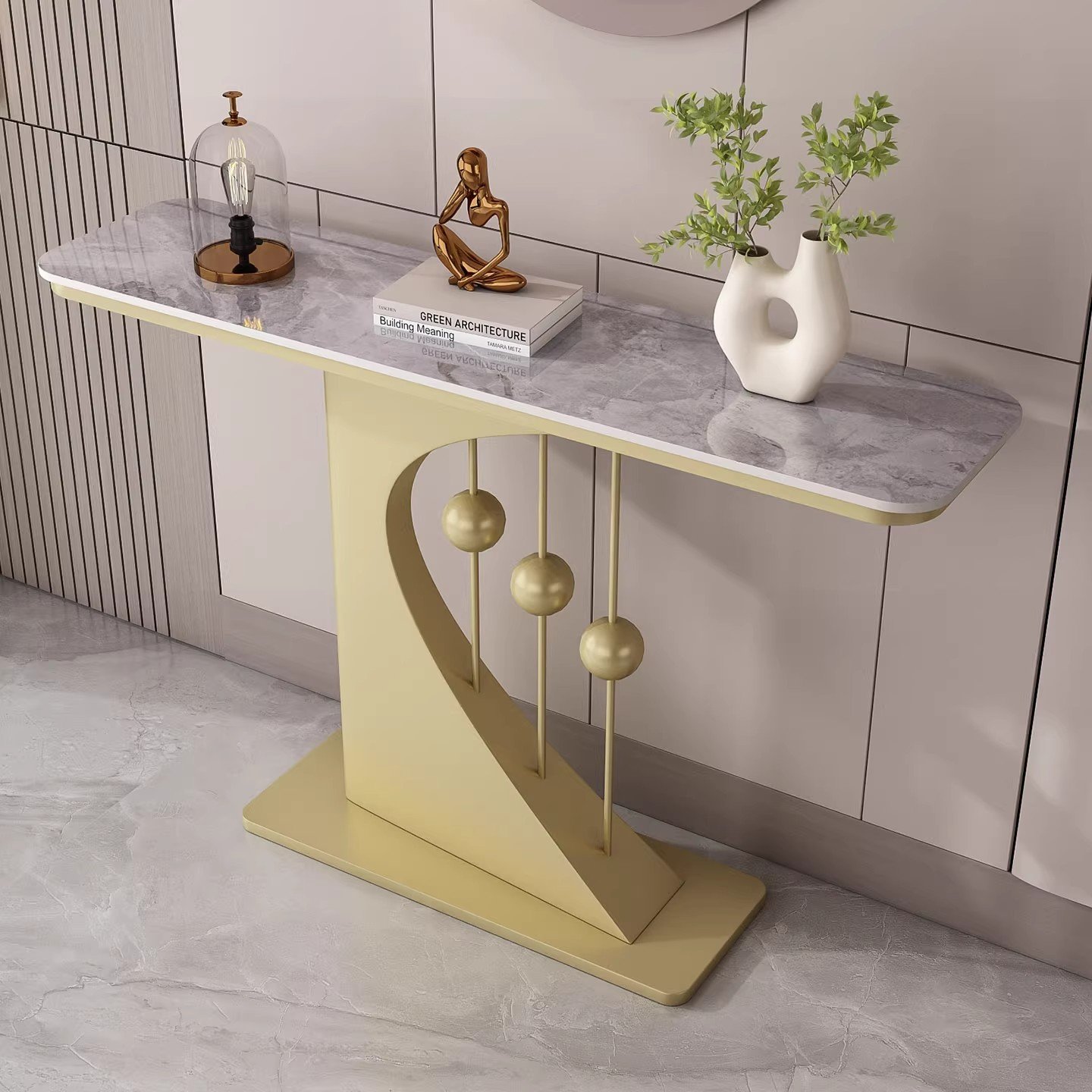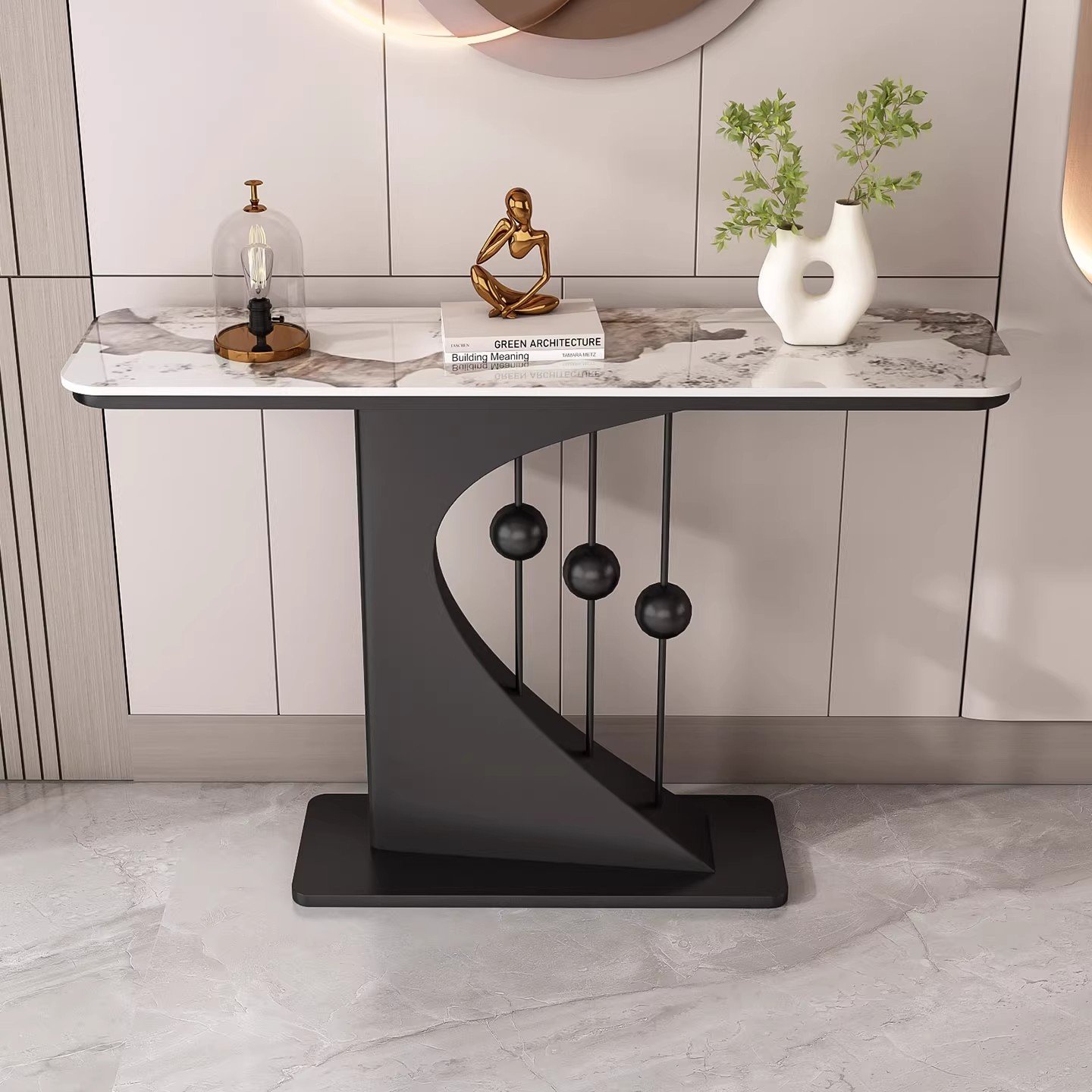 Entrance passage, hotel living room corridor, lightweight luxury stone slab corridor, table console, table entrance, cutlery cabinet