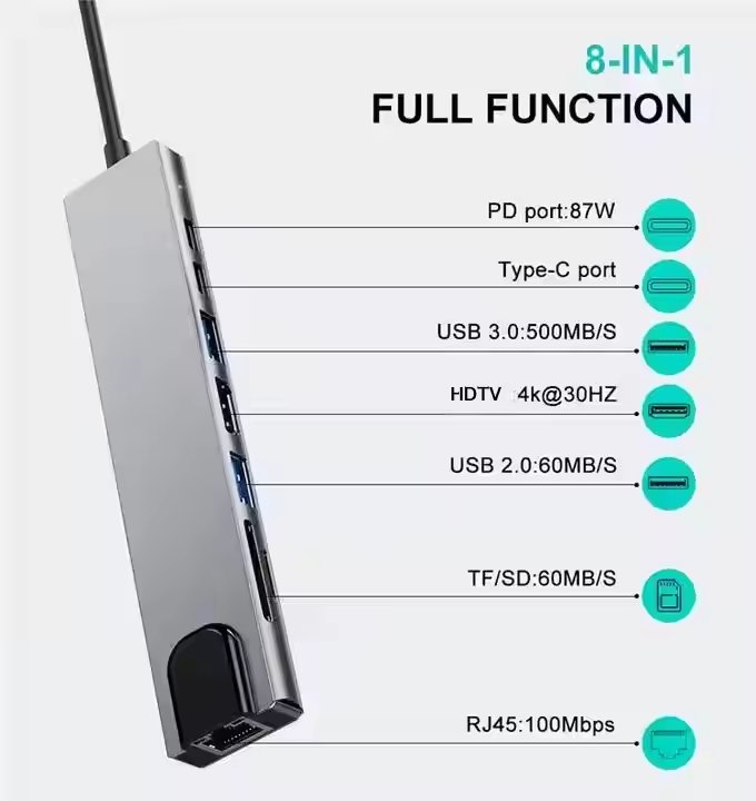 Portable computer 8K industrial grade power supply charging multi port laptop 2.0 4k 7-port 11 adapter 8-in-1 high-definition movie 3.0 Type USB C hub