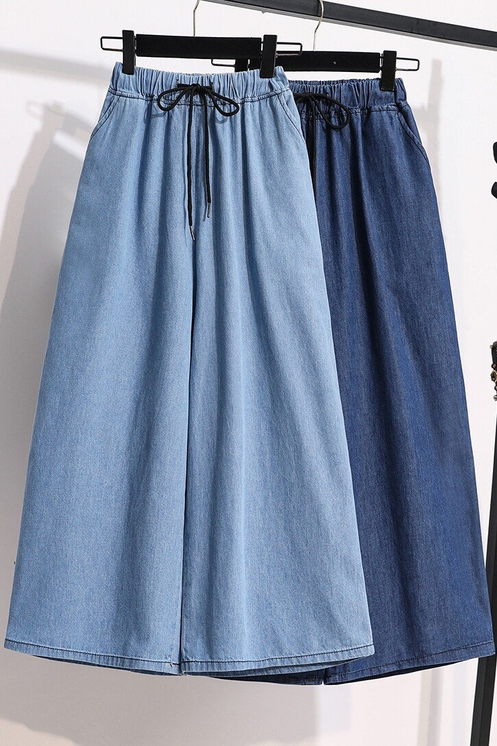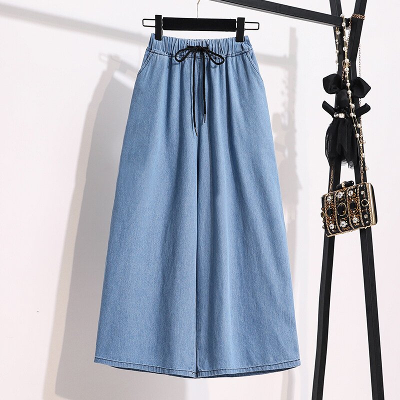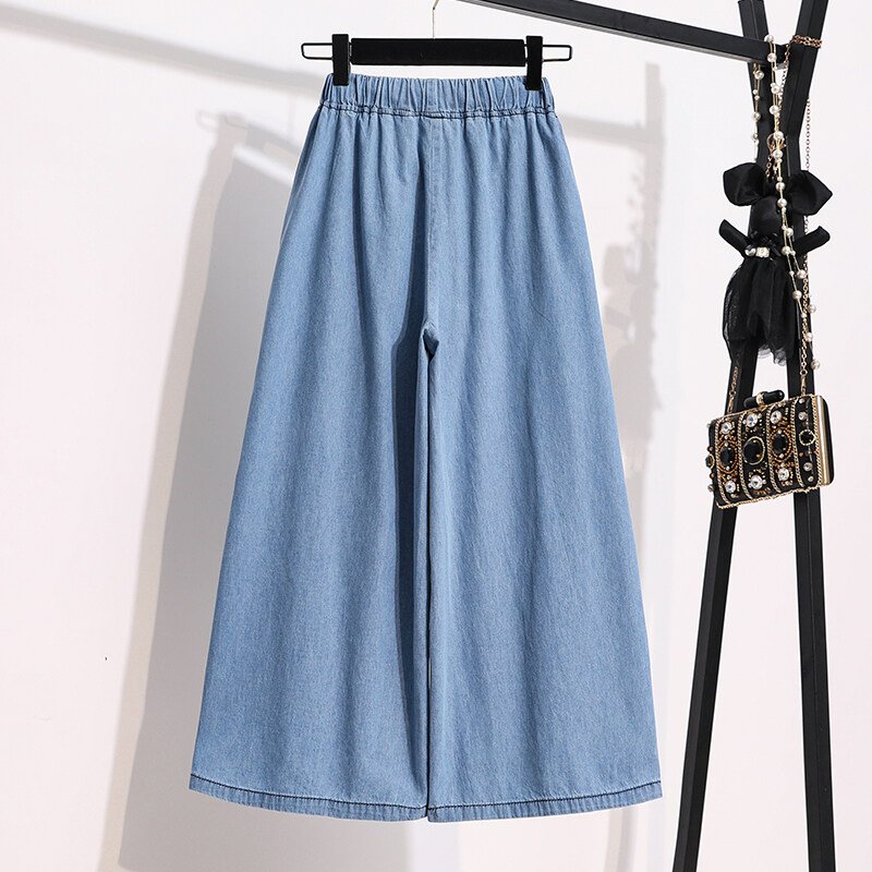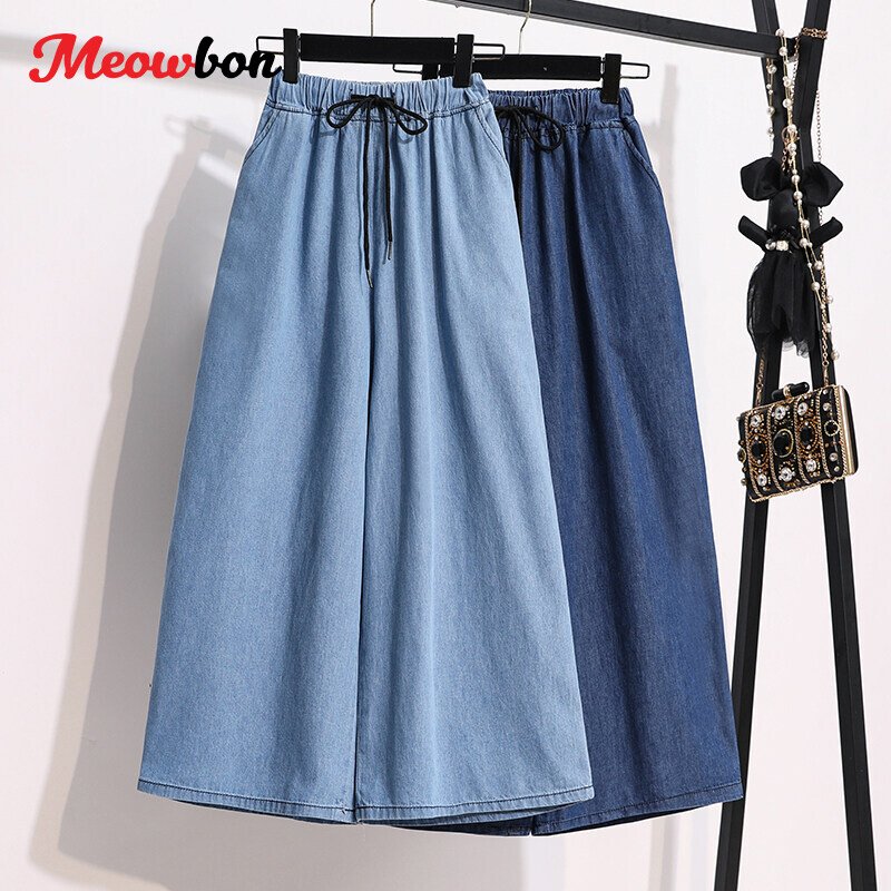 Plus Size Elastic Waist Thin Casual Summer 7 Points Denim Capri Pants Cropped Jeans for Women S M L XL XXL XXXL 4XL 5XL