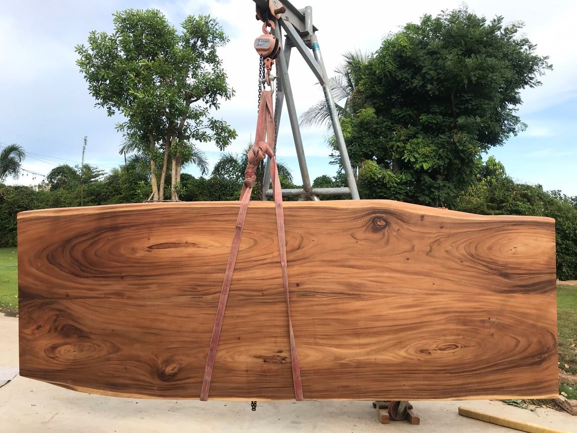 Solid walnut flat wooden tabletop with natural grain and meat chunks with active edges, stock, used for restaurant and kitchen labels