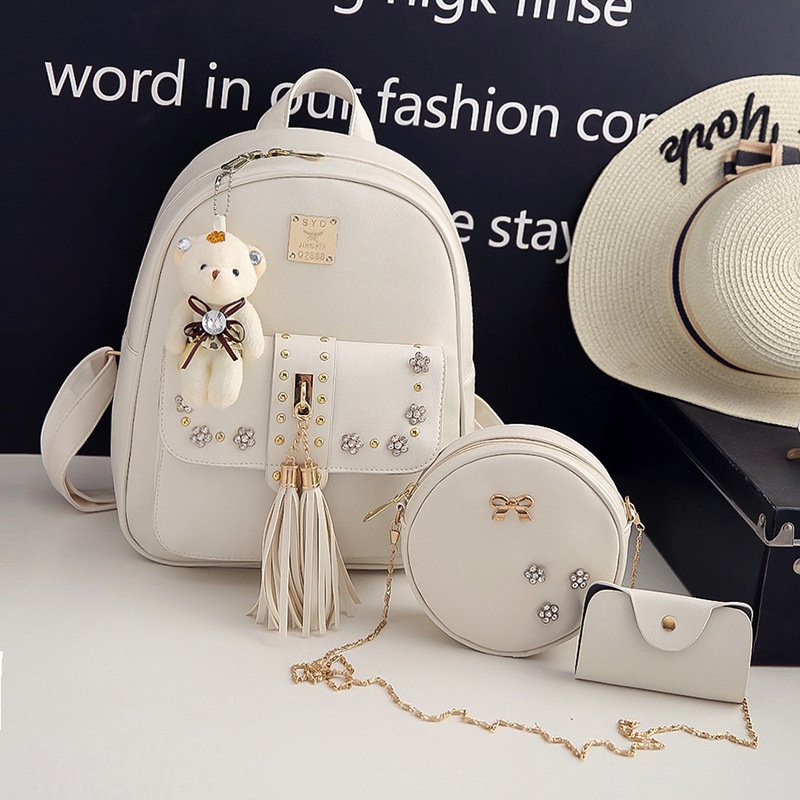 Wholesale backpacks, backpack sets, women's backpacks, luxurious, fashionable, waterproof PU polyester women's zipper buckle