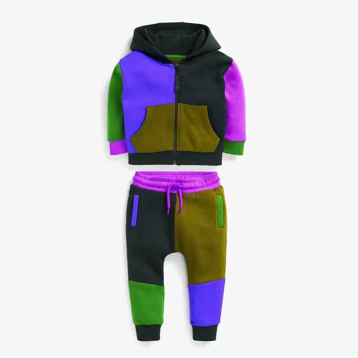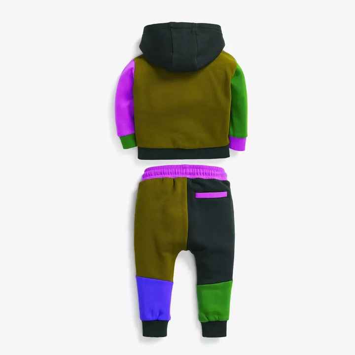 Customizable two-piece children's sportswear set for winter, pullover hooded sweatshirt, jogging suit, solid color, patterned, 100% cotton, breathable.