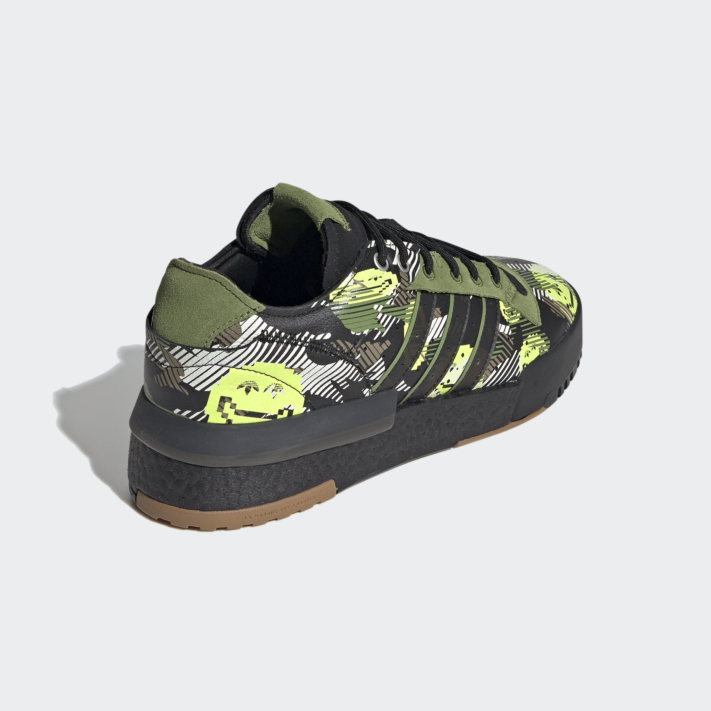 What would '80s shoe designers have done with modern technology? A thought experiment becomes reality in these adidas Rivalry RM Low Shoes. Stripped-down and rebuilt, the shoes have a Boost midsole to emphasise comfort. A digital camouflage print incorporates smiling emojis.