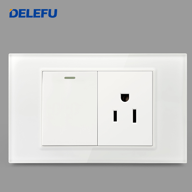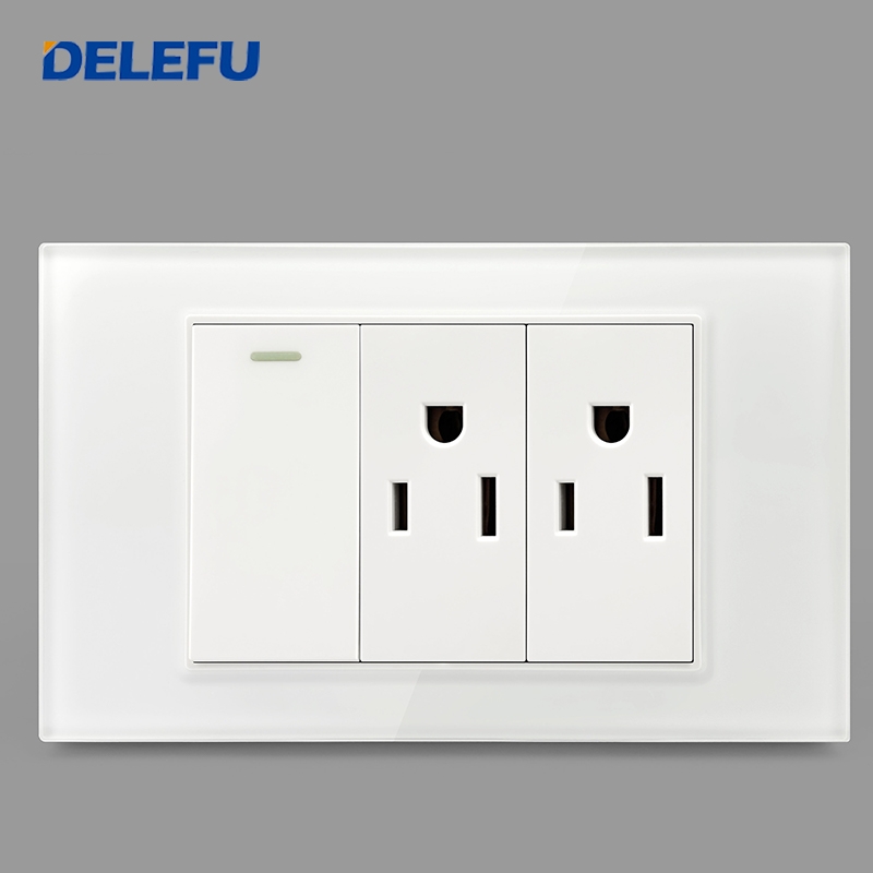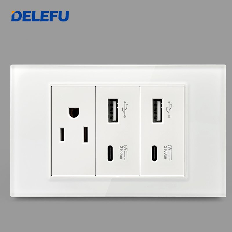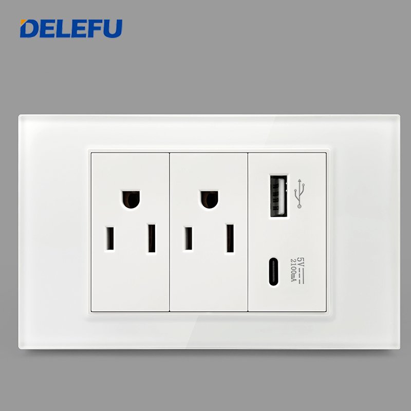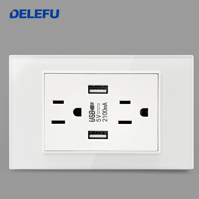 DELEFU white tempered glass universal serial bus American standard socket Mexican American plug 118 * 72 wall power socket light switch fast charging