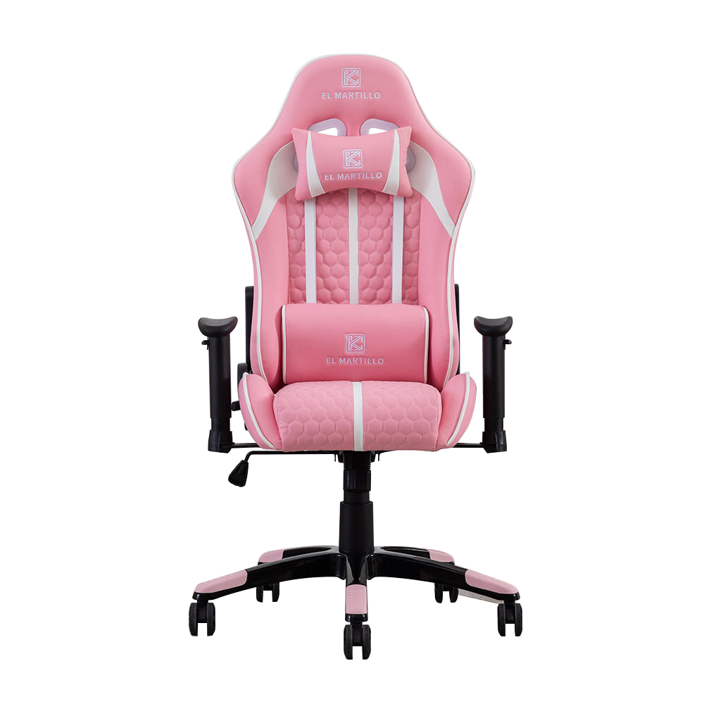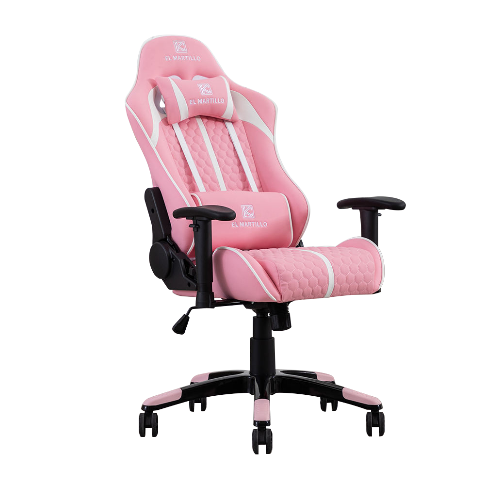 Pink gaming chair with 90-118 degree angle adjustment for girls' gaming chair