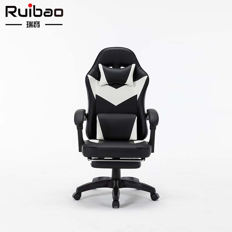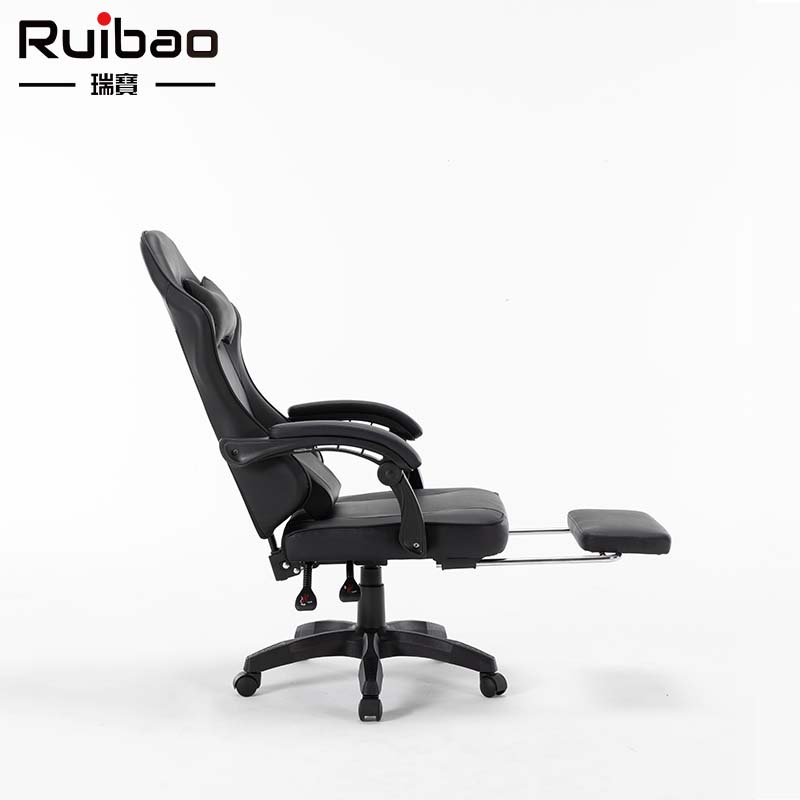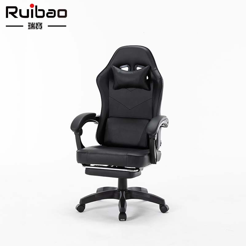 Wholesale synthetic leather all black ergonomic gaming chair with adjustable rotating footrest metal base, suitable for home offices
