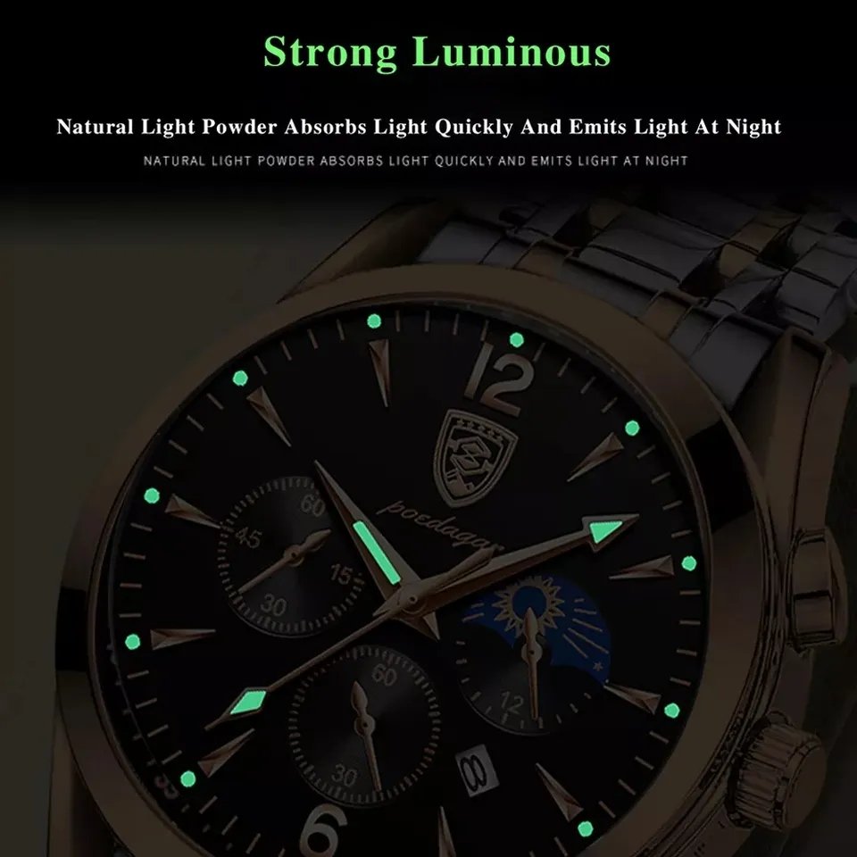 829 Men's Brand New Fashionable Korean Style Stainless Steel Luxury Quartz Watch, Waterproof, Date Luminous Function, Business Style