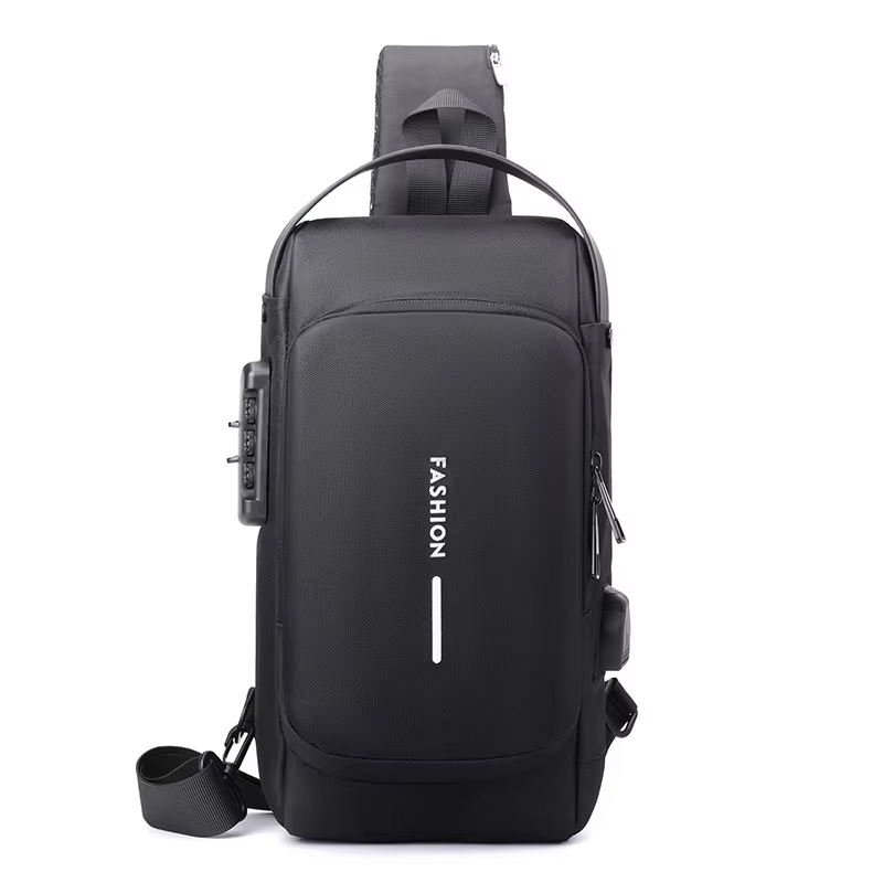 2025 hot selling waterproof men's shoulder chest motorcycle bicycle sling bag with lock customized logo USB drive anti-theft crossbody bag