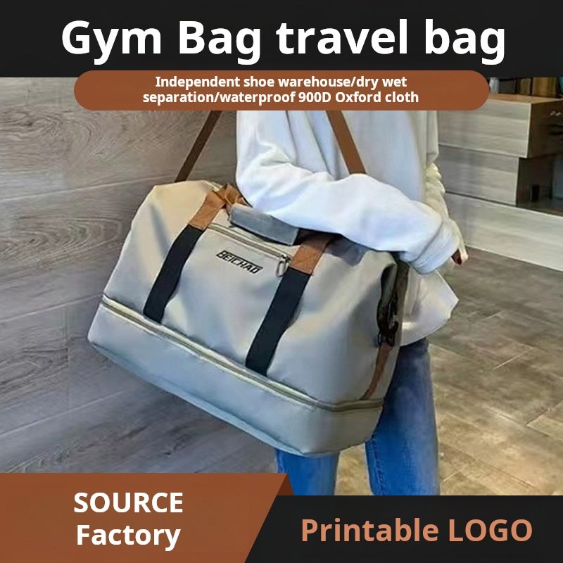 Large capacity waterproof luggage bag, suitable for gym, travel and sports, pull rod cover, dry wet separation, customized logo design
