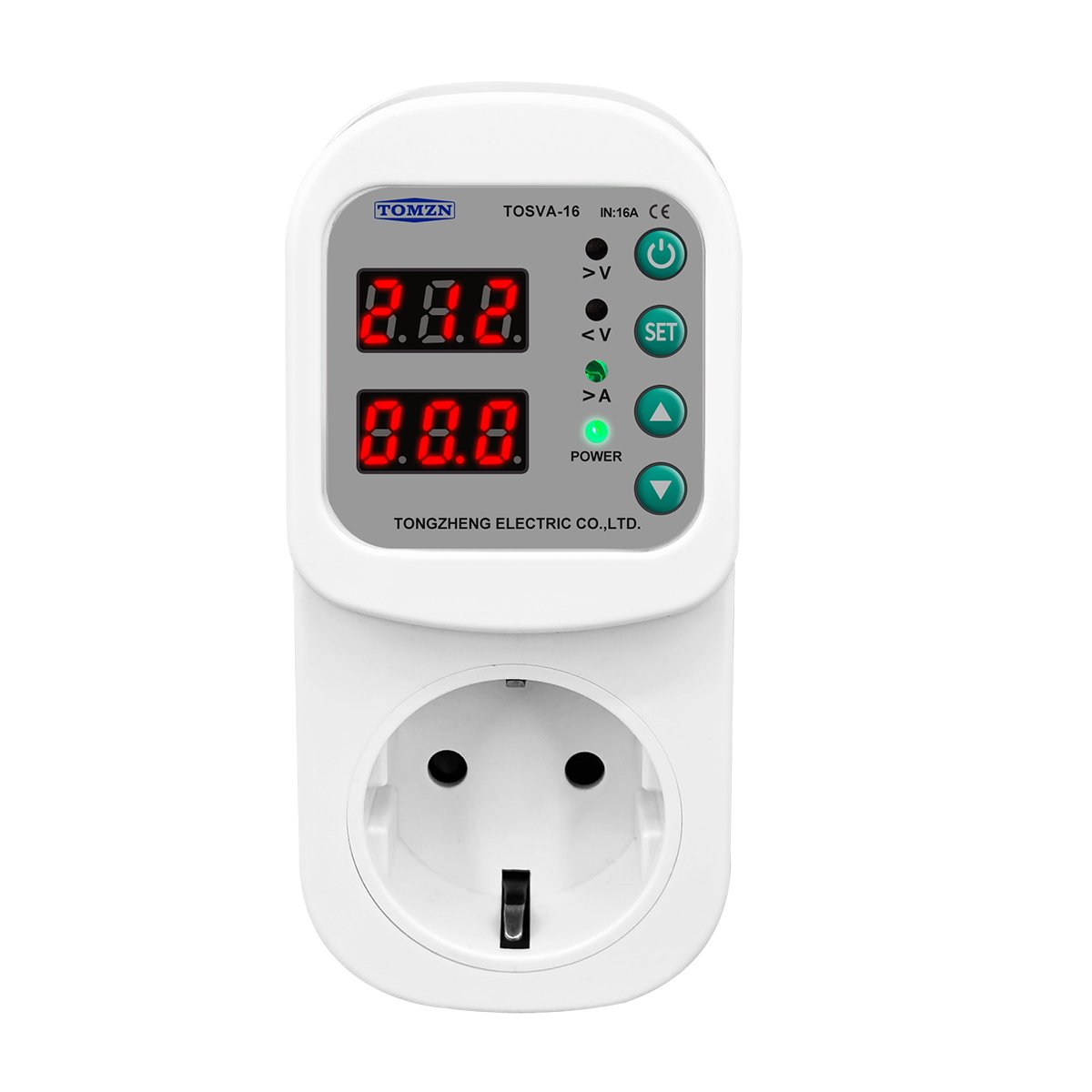 TOMZN automatic voltage and current protector socket AC 110V 220V adjustable 16A power surge protector EU plug socket TOSVA-16