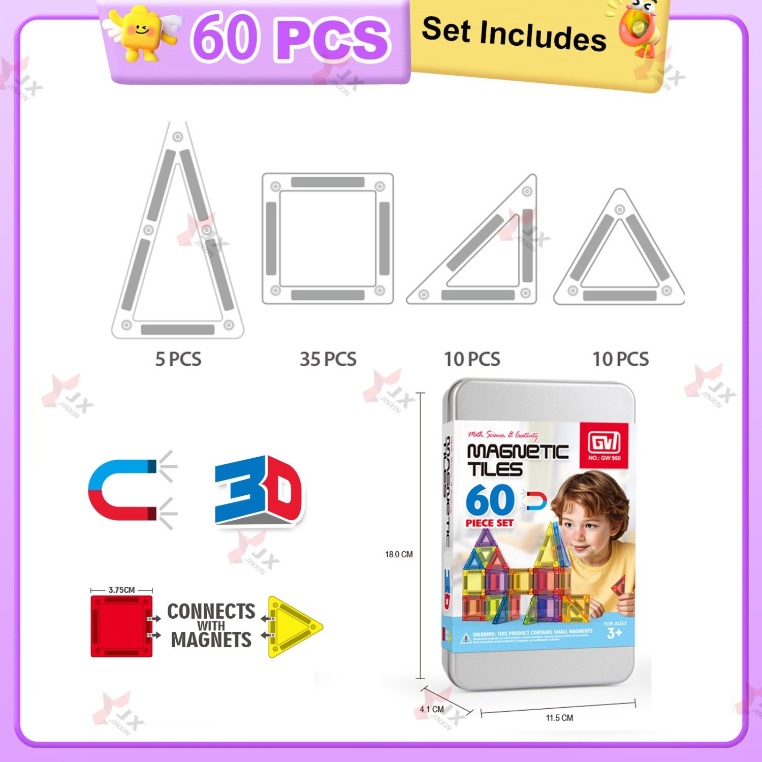 2025 Trend: 60-Piece Tin Box Magnetic Building Blocks Portable Magnetic Tile Toy Travel Set for Toddlers and Children