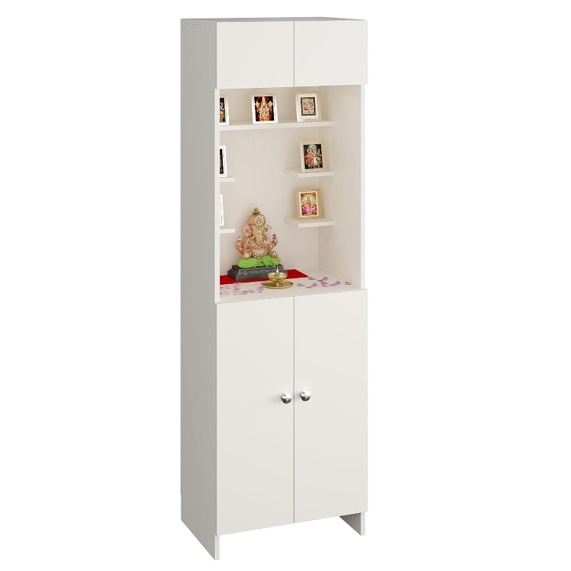 Customized white wooden wall mounted Pooja Mandir Family Worship Temple