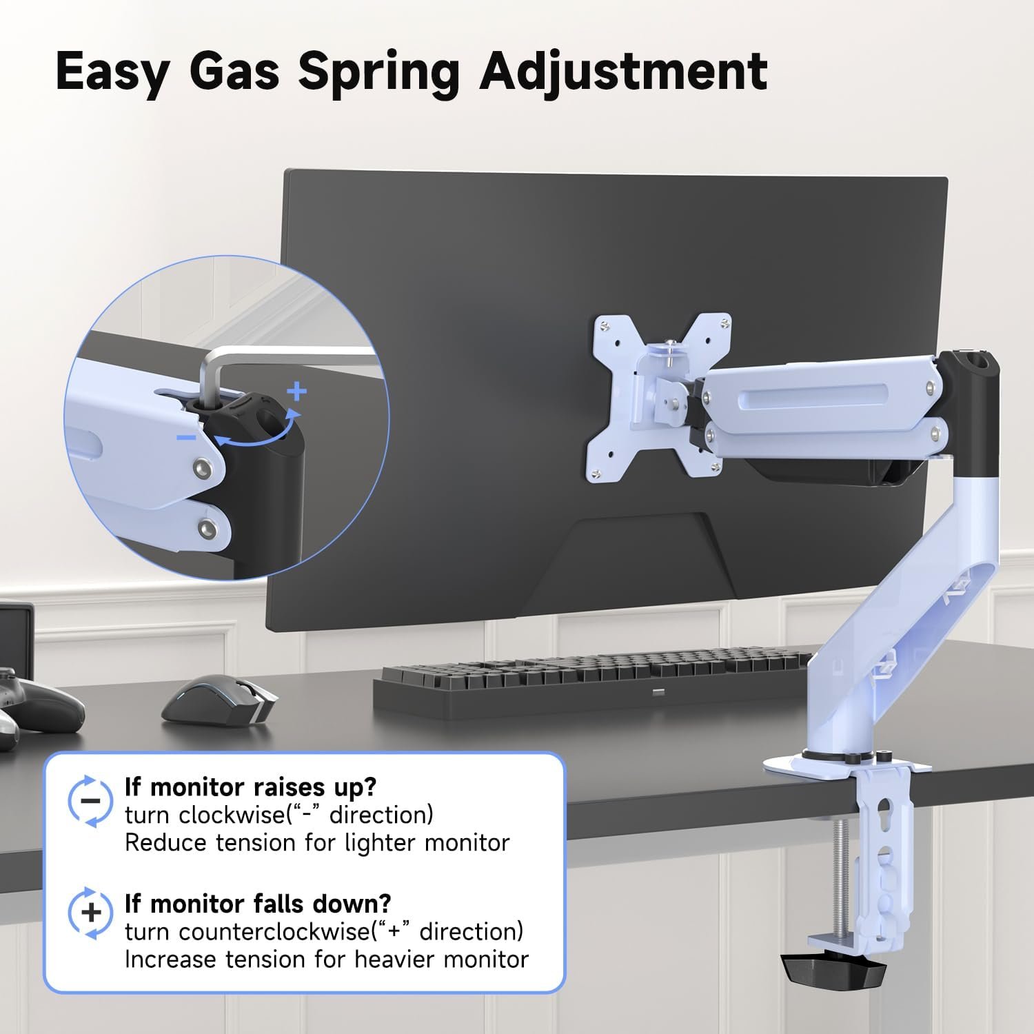 Monitor arm, gas spring monitor arm, desktop stand, fully adjustable, suitable for 17-32 inch monitors, load capacity up to 22 lbs.