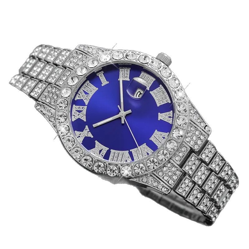 Wholesale fashion retro diamond studded alloy watches for men's luxury quartz watches 2026